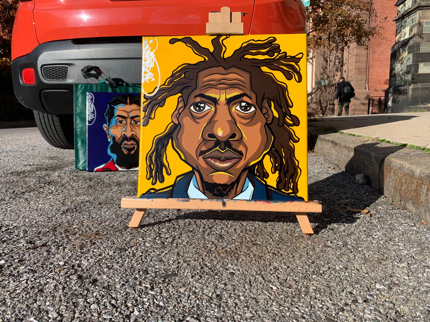 14x14in. Acrylic and oil pen on pre-stretched canvas